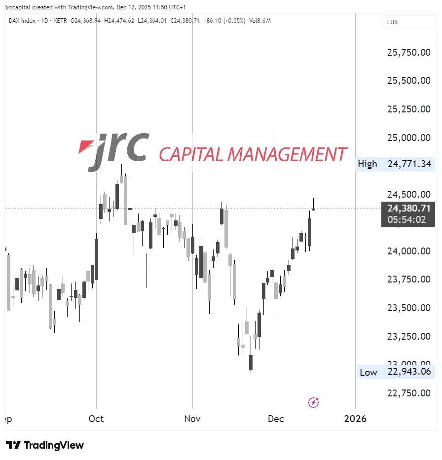 Der Wochenausklang an den westlichen Börsen steht klar im Zeichen der laufenden Weihnachtsrally: Europa setzt die Aufwärtsbewegung vom Vortag fort, während die US‑Indizes nach neuen Rekorden vom Donnerstag mit stabilem Rückenwind für Risikoanlagen sorgen. Die Treiber bleiben die jüngste Fed‑Entscheidung mit weicherem Zinston sowie eine breit abgestützte Sektorrotation hin zu Zyklikern und Finanzwerten. Europa: DAX […]